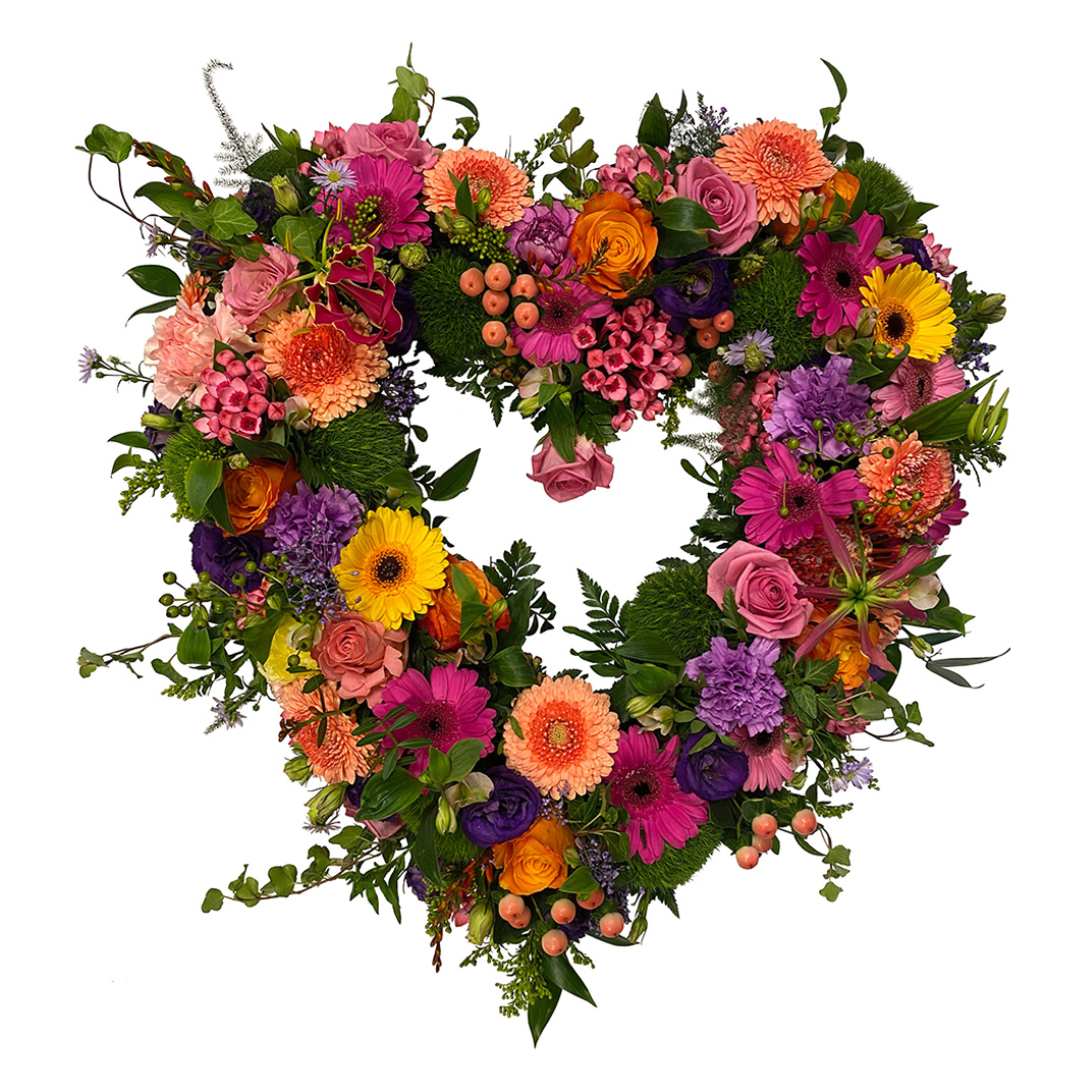 Onze ervaren top bloemisten stellen dit mooi open gemengde rouwhart in diverse kleuren met de grootste zorg voor je samen. Wij werken alleen met dagverse bloemen en bladgroen. Bestel dit mooie rouwhart eenvoudig via onze website. Wij bezorgen jouw rouwhart op tijd en op elk adres in Nederland. TOP rouwstuk is sinds 1994 gespecialiseerd in bijzondere rouwharten.